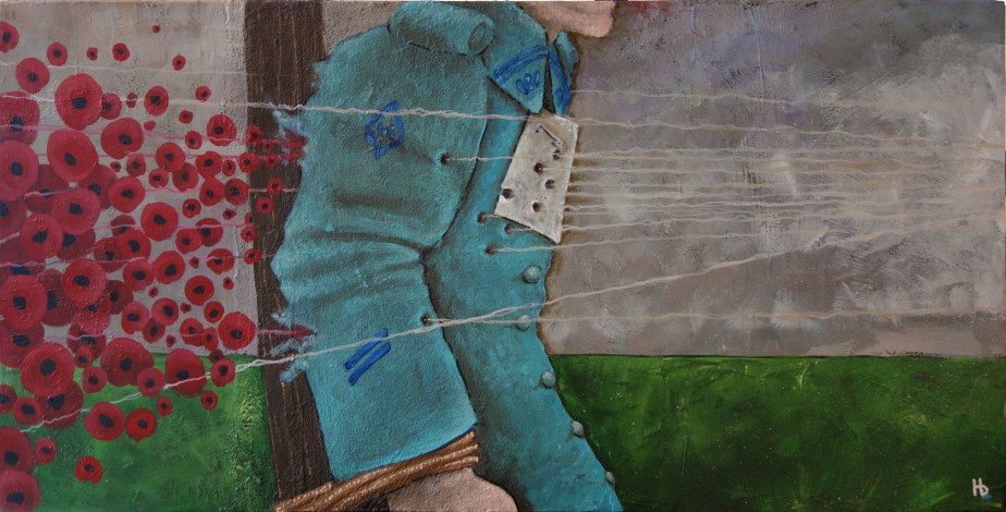 Diese Skulptur ist schon durch das Material, aus dem sie gefertigt ist, symbolisch, denn ihre Basis besteht aus einem authentischen Granatsplitter vom Schlachtfeld „Chemin des Dames“ im Département Aisne, wo Im Jahr 1917 eine der heftigsten Schlachten des Ersten Weltkrieges stattfand, in dem meine beiden Großväter Hans und Henri, 18 und 19 Jahre alt, jeweils auf der gegenüberliegenden Seite kämpften.